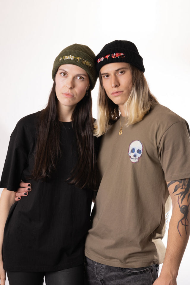 ジョニーのアートを称える、展示会タイトル「A Bunch Of Stuff」があしらわれたウーリービーニーです。