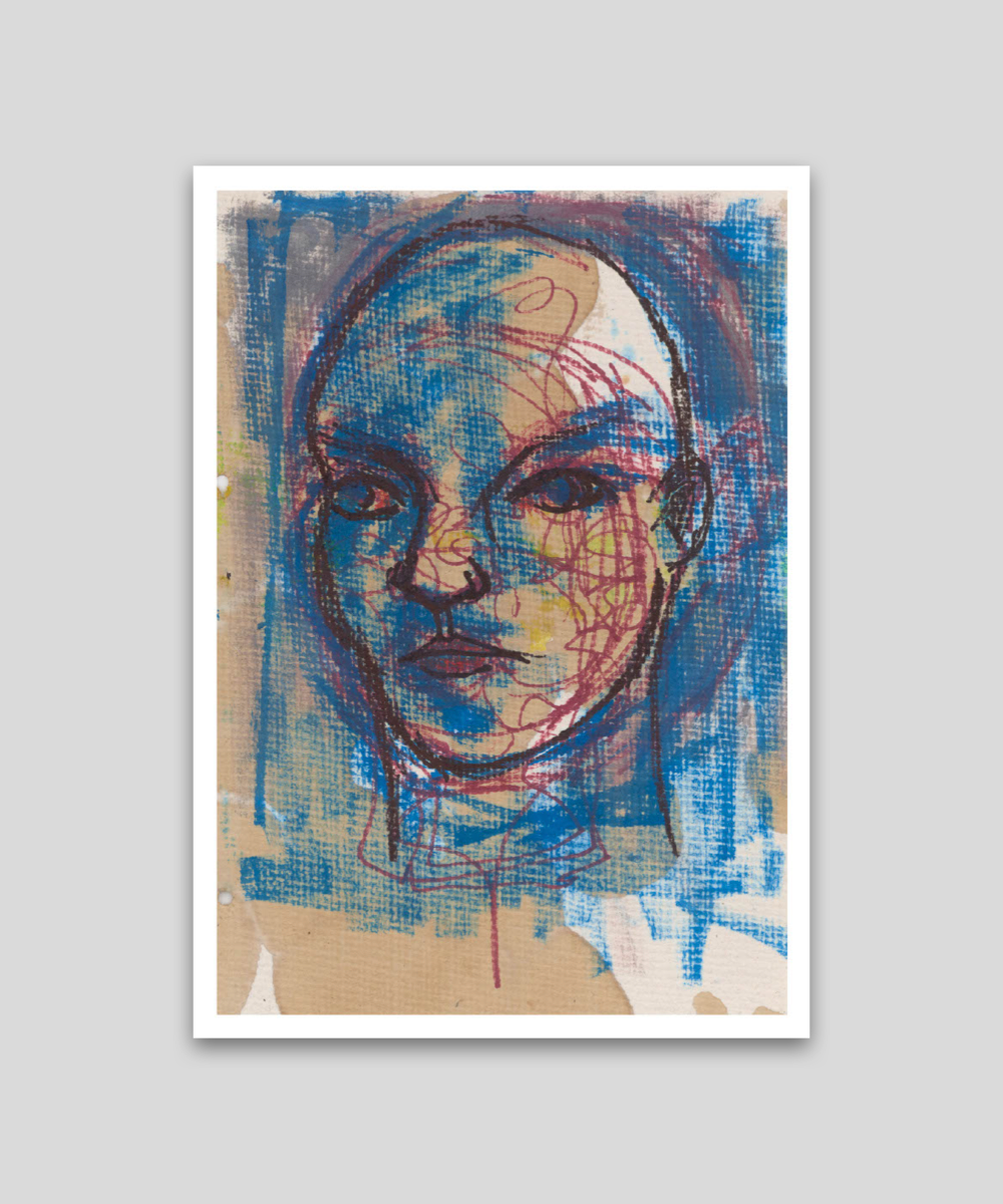 この“Everyman”作品はコーヒーの染みを構図に取り入れ、ジョニー・デップの創造性と偶然を美に変える見事な才能を示しています。制作年不明のジョニー・デップ原画を基にしています。