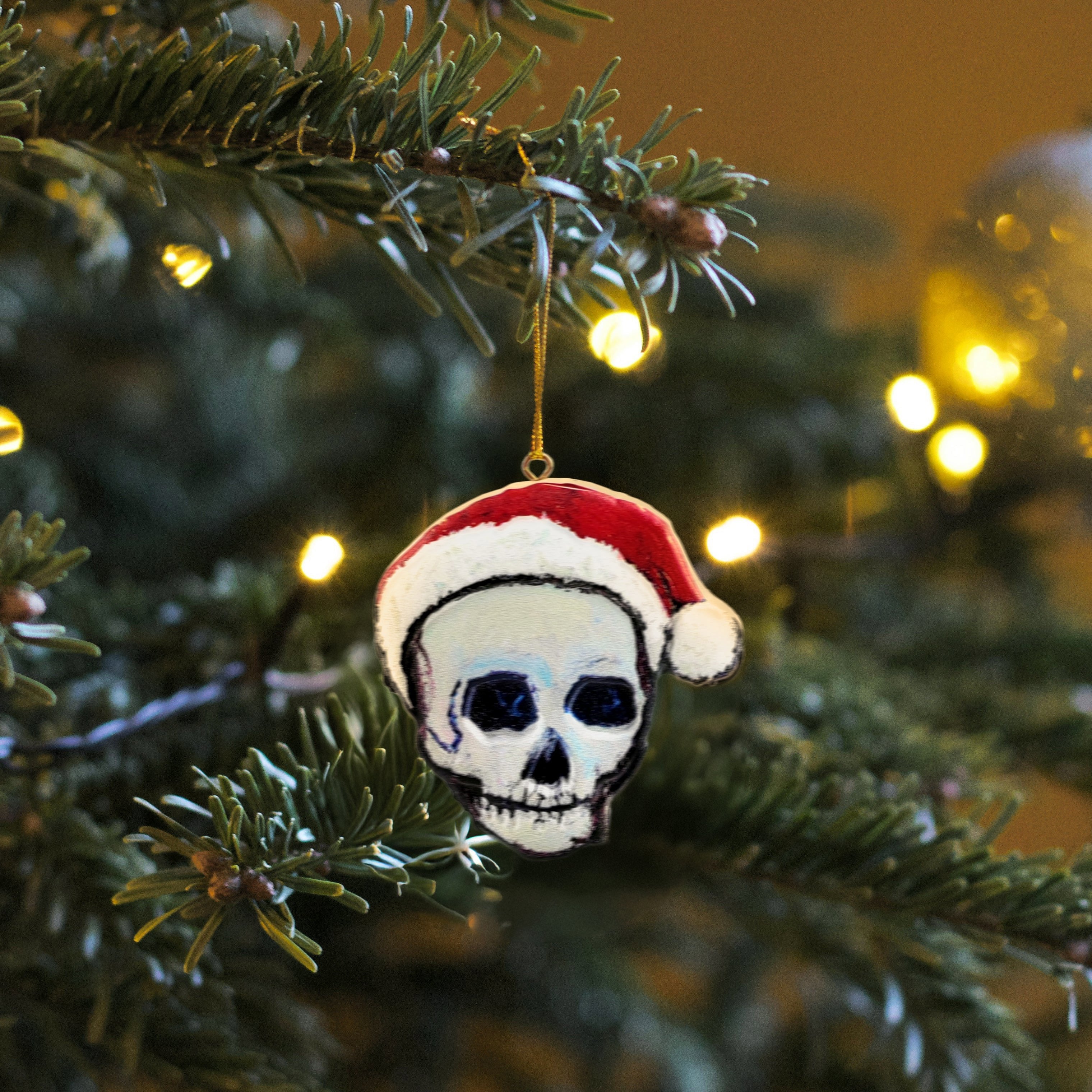 展覧会で展示されたJDの代表的な頭骸骨の絵画の一つを基にしたこのオーナメントは、クラシックなサンタ帽をダークで華やかにアレンジ。型破りなアートとホリデースピリットを融合させたい方にぴったりの飾りです。